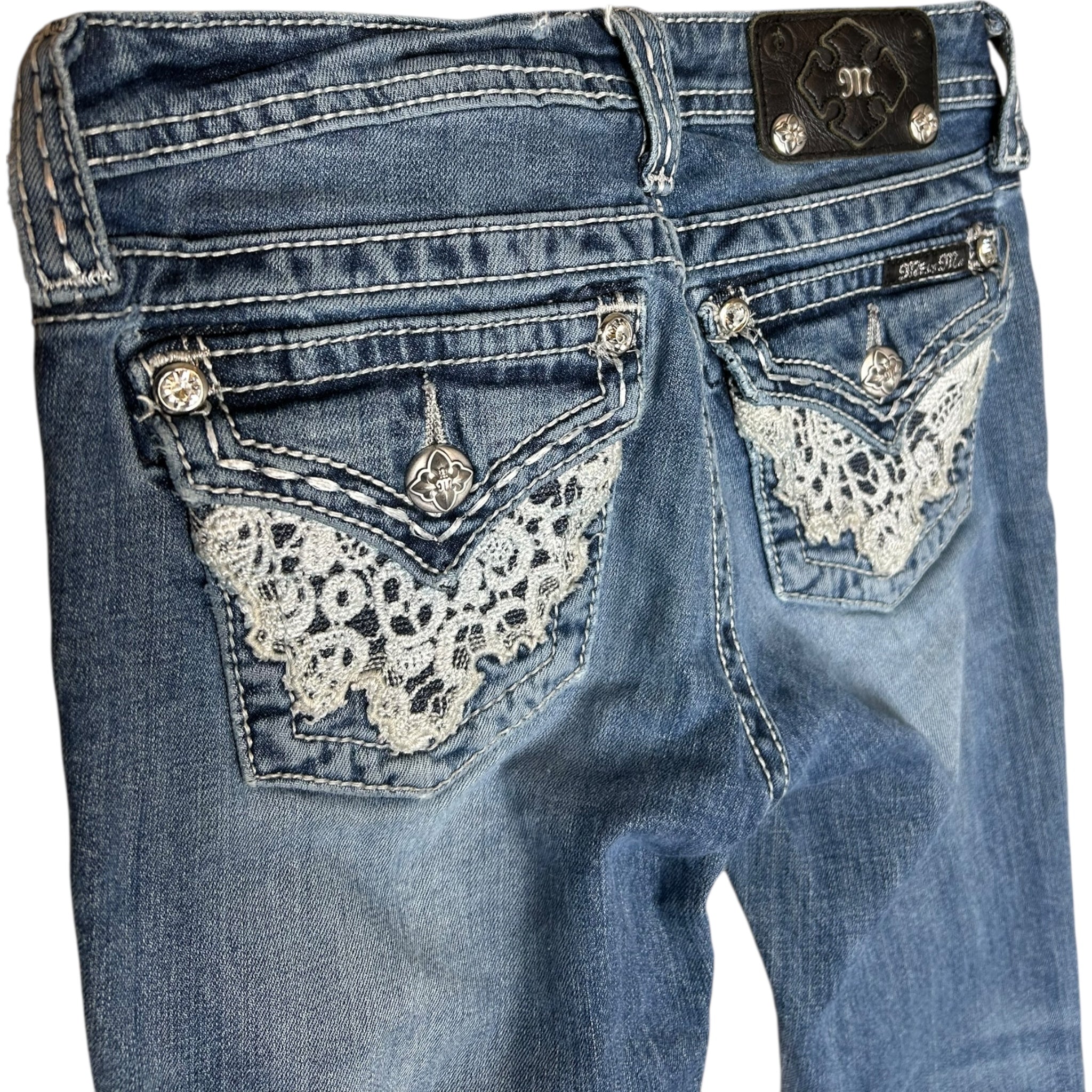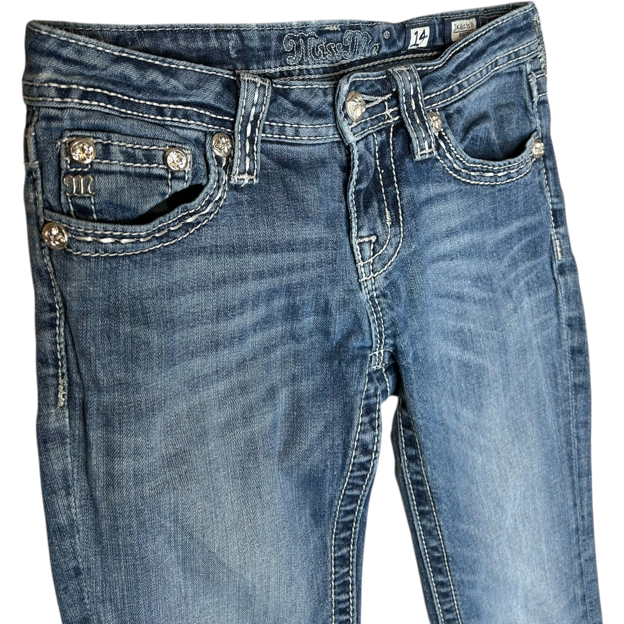 (14) Miss Me Low Waist Bootcut Jeans