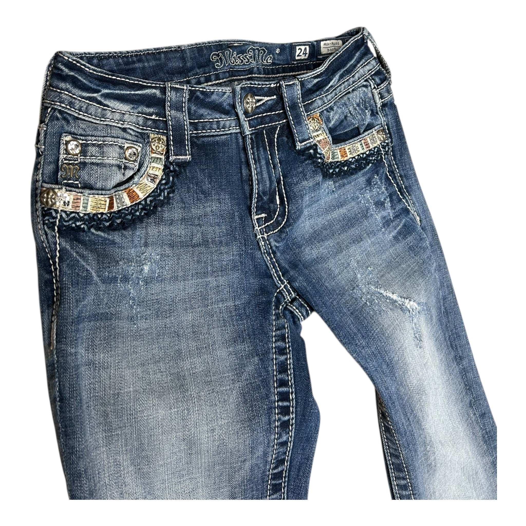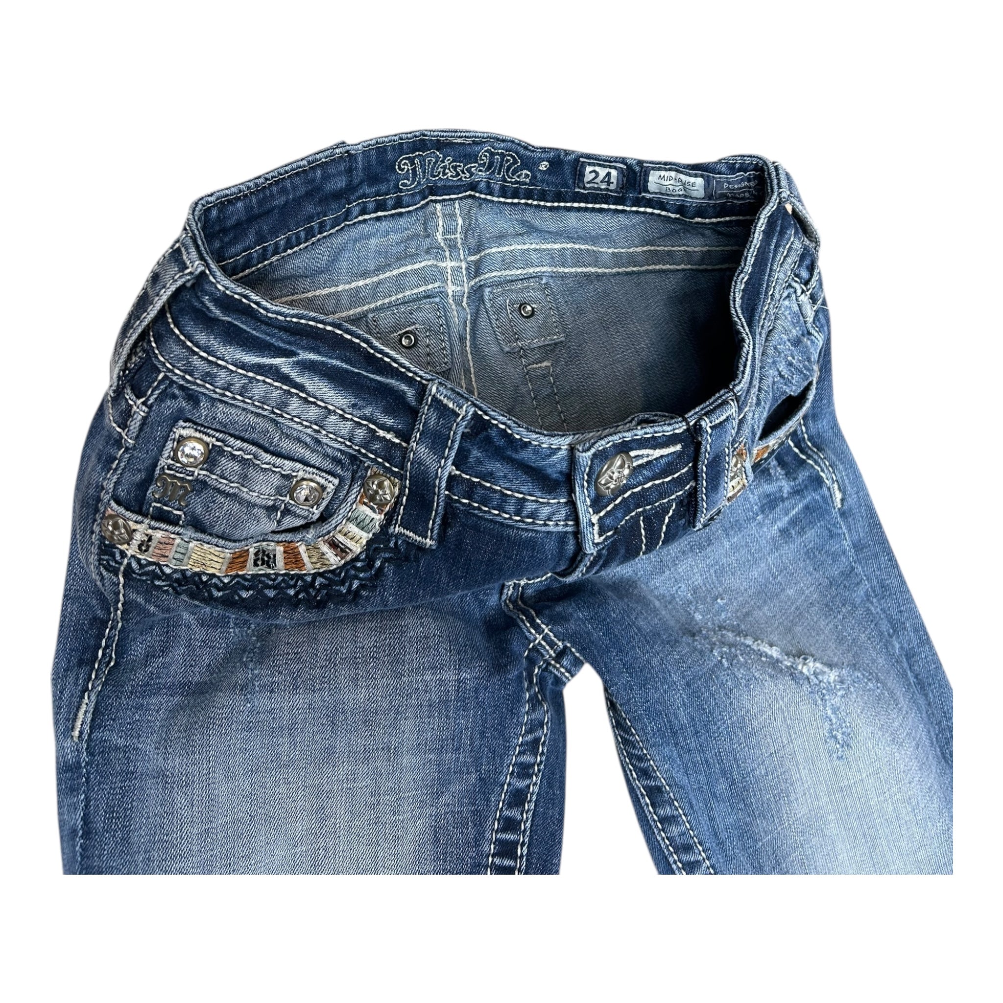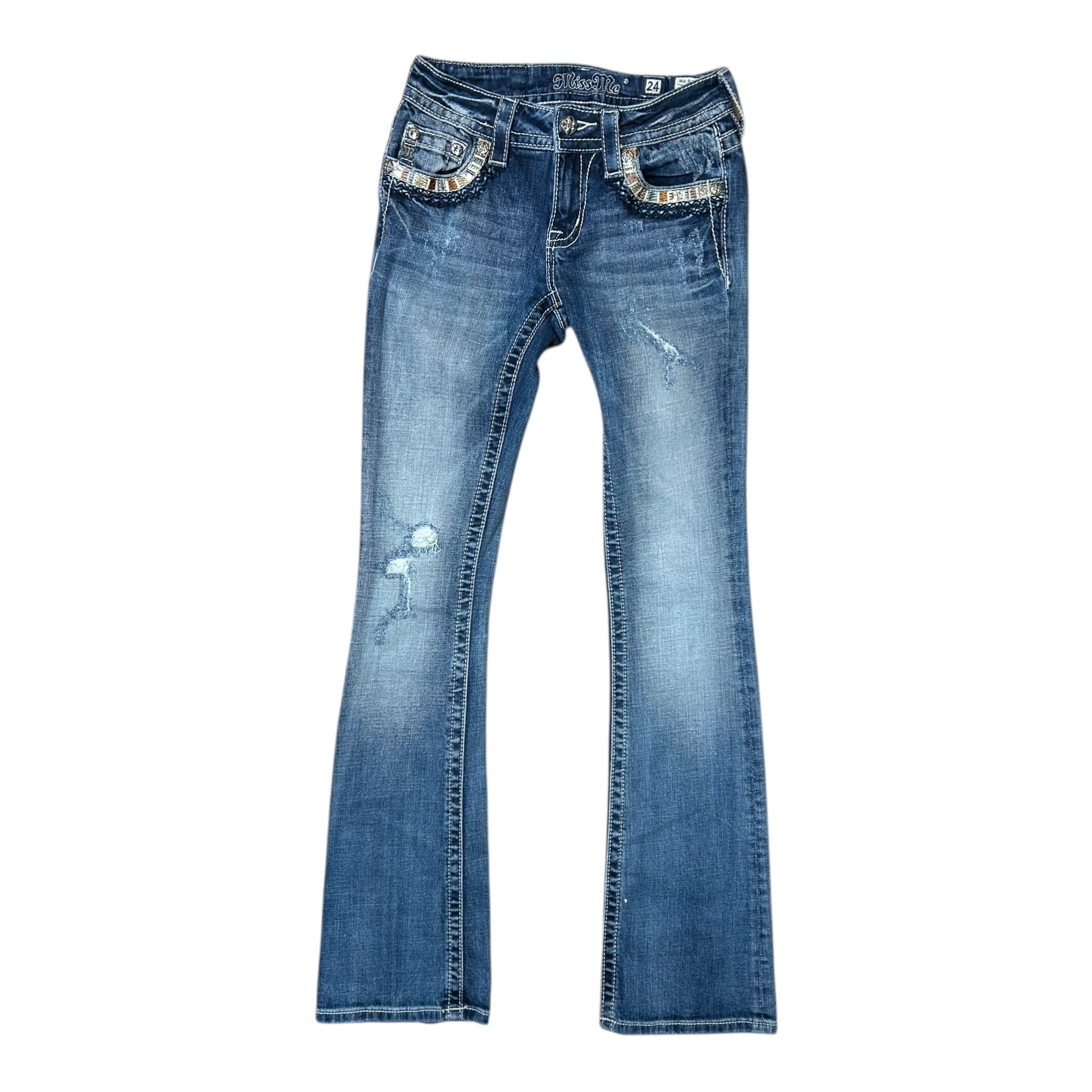 (24) Miss Me Low Waist Bootcut Jeans